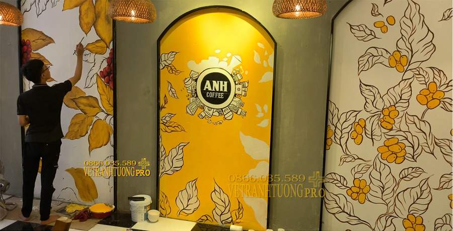 Vẽ tranh tường quán cafe tại Hà Nội vẽ nét trắng